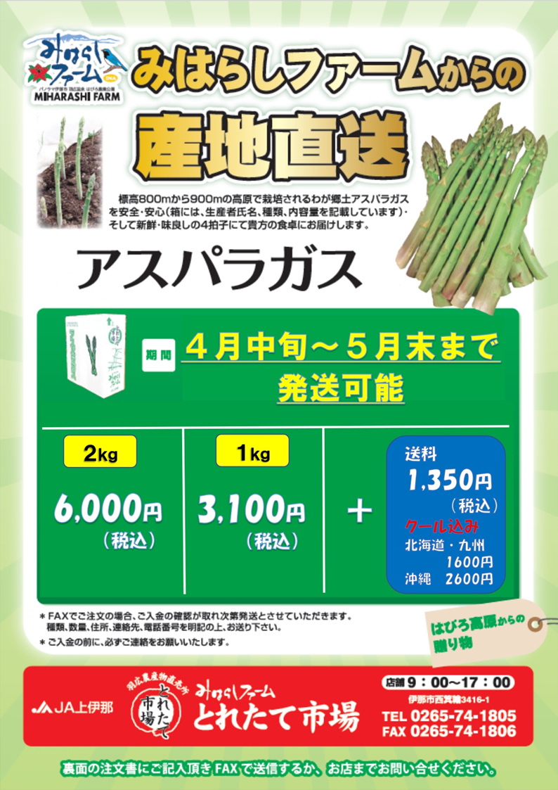 【産地直送】旬のアスパラガス、地方発送の承りを開始しました!