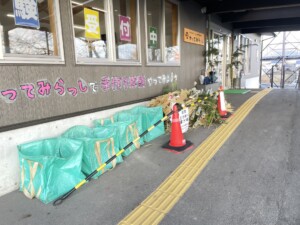 松飾りや南天、門松などの大きなもの、および葉が散らばりやすいものにつきましては、「やってみらっし」入り口外側に設けております専用の回収スペースへお出しください。