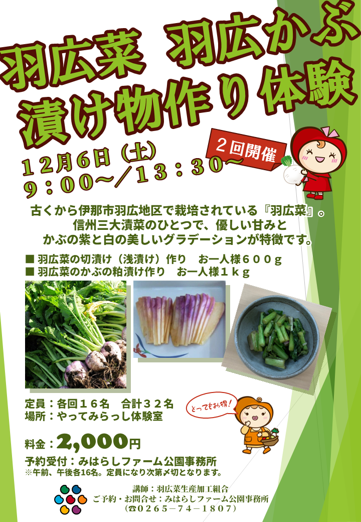 昨年ご好評を頂きました羽広菜、羽広かぶの漬物体験を今年も開催します!
