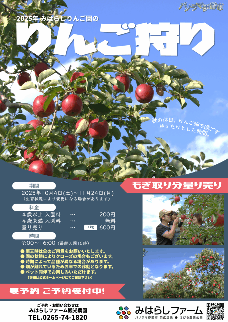 高冷地で太陽をたっぷり浴びて育った、美味しいりんごの収穫体験をお楽しみください。