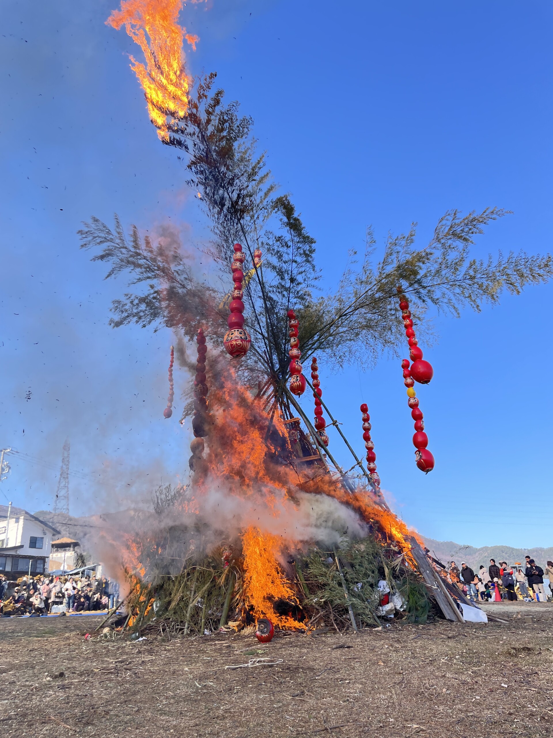 南信最大級の伝統行事!みはらしファームの「せいの神」 長野県内でも有数の規模を誇るどんど焼き、伝統行事「せいの神」を今年も開催いたします。 南信最大級となる「やぐら」は、土台がおよそ6メートル、最頂点はおよそ13メートルに達し、その燃え上がる姿は迫力満点です。 古くから伝わる伝統行事に触れながら、一年の無病息災と健康を一緒に祈りましょう。どなたでも無料でご見学・ご参加いただけます。 【開催概要】 日時:1月18日(日) 正午(12:00)〜 会場:みはらしファーム 東側 牧草地