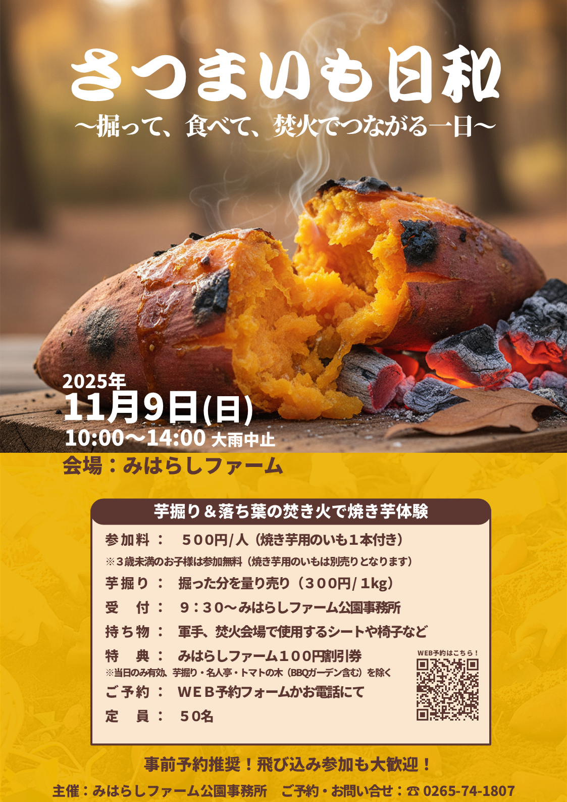 自然の中での交流と、美味しいさつまいもを囲んで、思い出に残る一日を一緒に作りましょう! 皆さまのご参加をお待ちしております。